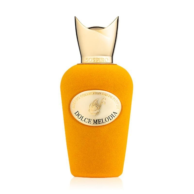 Sospiro Dolce Melodia — chiếc chai màu cam rực rỡ với phần nắp vàng sang trọng, mang đậm dấu ấn niche Ý thể hiện phong cách quý phái và tinh tế.