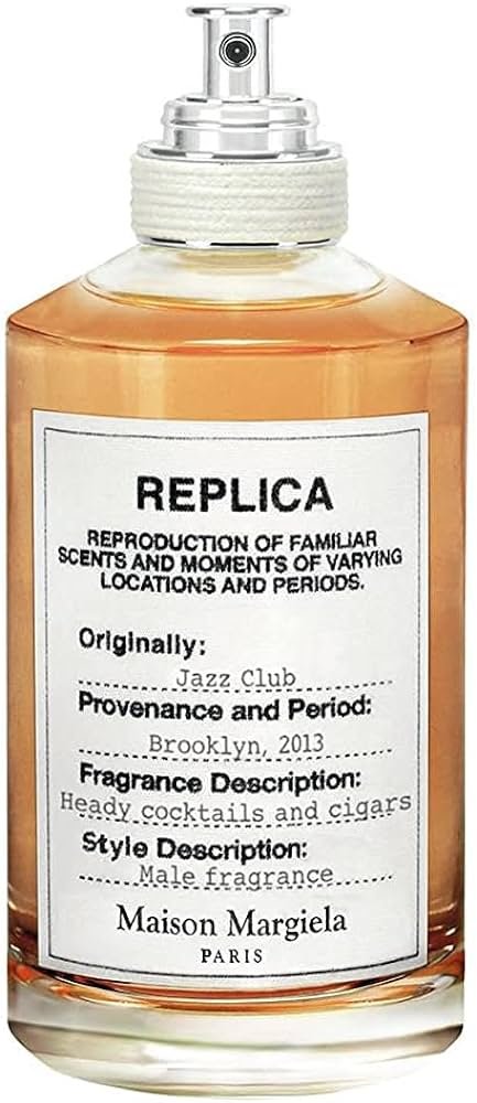 Replica Jazz Club của Maison Margiela là một hương Amber Woody dành cho Unisex, ra mắt năm 2013. Các nốt hương đầu là Neroli, Chanh vàng, Tiêu hồng; các nốt hương giữa là Rượu Rum, Xô thơm, Nhài; các nốt hương cuối là Lá thuốc, Vani, Cỏ hương bài, Xạ hương. Dựa trên dữ liệu cộng đồng, mùi hương này được đánh giá cao nhất cho việc sử dụng vào Ban đêm, đặc biệt là trong mùa Đông và mùa Thu.