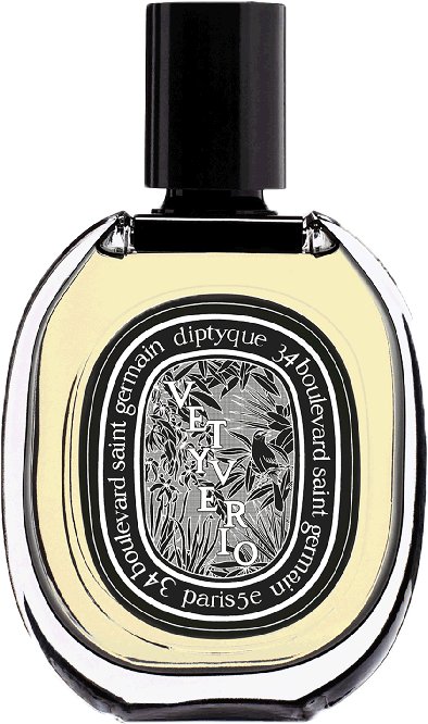 Vetyverio của Diptyque là một hương thơm Gỗ dành cho Unisex, ra mắt năm 2010. Nốt hương đầu là Bưởi, Cam Bergamot, Chanh; nốt hương giữa là Ngọc lan tây, Hoa hồng, Phong lữ; nốt hương cuối là Cỏ hương bài, Gỗ tuyết tùng, Xạ hương, Hoắc hương. Dựa trên dữ liệu cộng đồng, mùi hương này được đánh giá cao nhất khi sử dụng Ban ngày, đặc biệt là vào mùa Thu, Xuân.